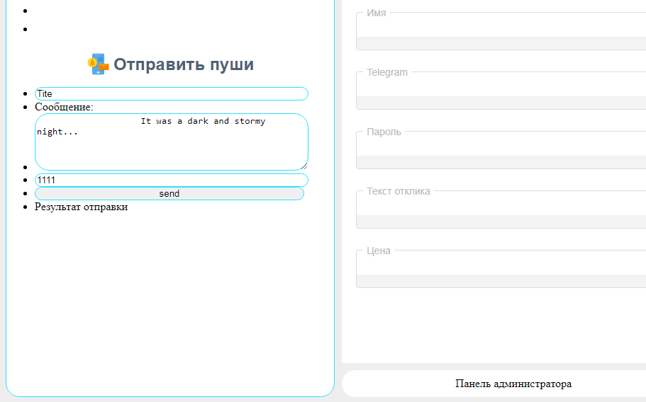 Наше приложения для IOS может принимать пуш уведомления, но для этого их надо отправить! А для оправки нужно ввести текст сообщения!